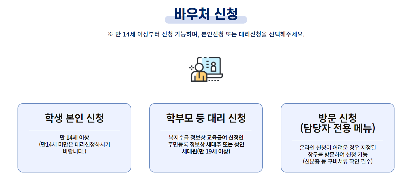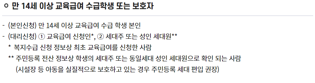 2. 본인신청: 만 14세 이상 교육급여바우처 수급 학생 본인