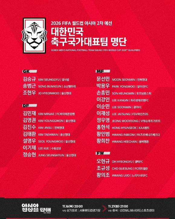 이번 A매치 기간에서는 클리즈만감독이 선수들을 어떻게 로테이션을 돌리면서 운영하는지 10월 A매치 기간처럼