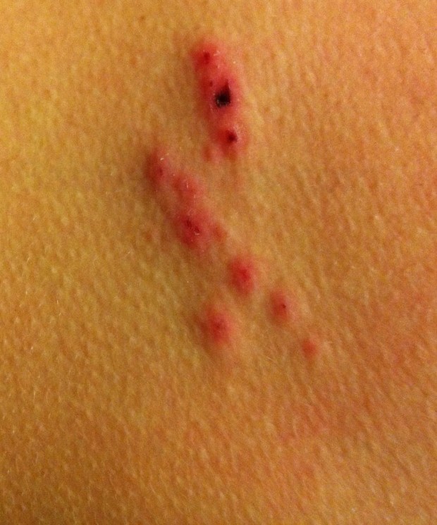 이런 식으로 빨갛게 오돌토돌하게 올라오고 지그재그 형태로 물린 자국이 있다면 빈대에 물린 것으로 의심해봐야 합니다.