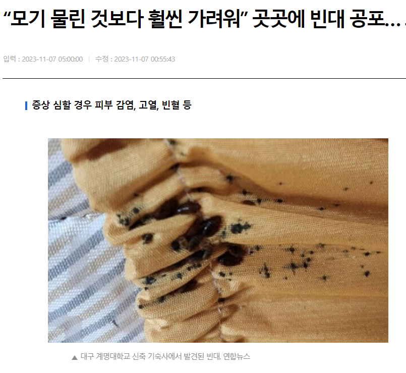 그래서 이렇게 나타난 빈대들이 인파가 많은 곳에서 전염이 많이 돼서 요즘에 문제인 것 같네요.