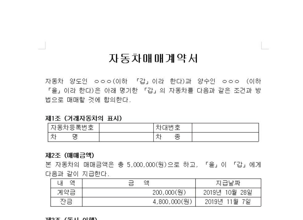 중고차 매매를 할 때 필요한 매매계약서 양식을 가져왔습니다. 중고차매매는 많은 분들이 이용 중이시고 그렇기에 매매 시